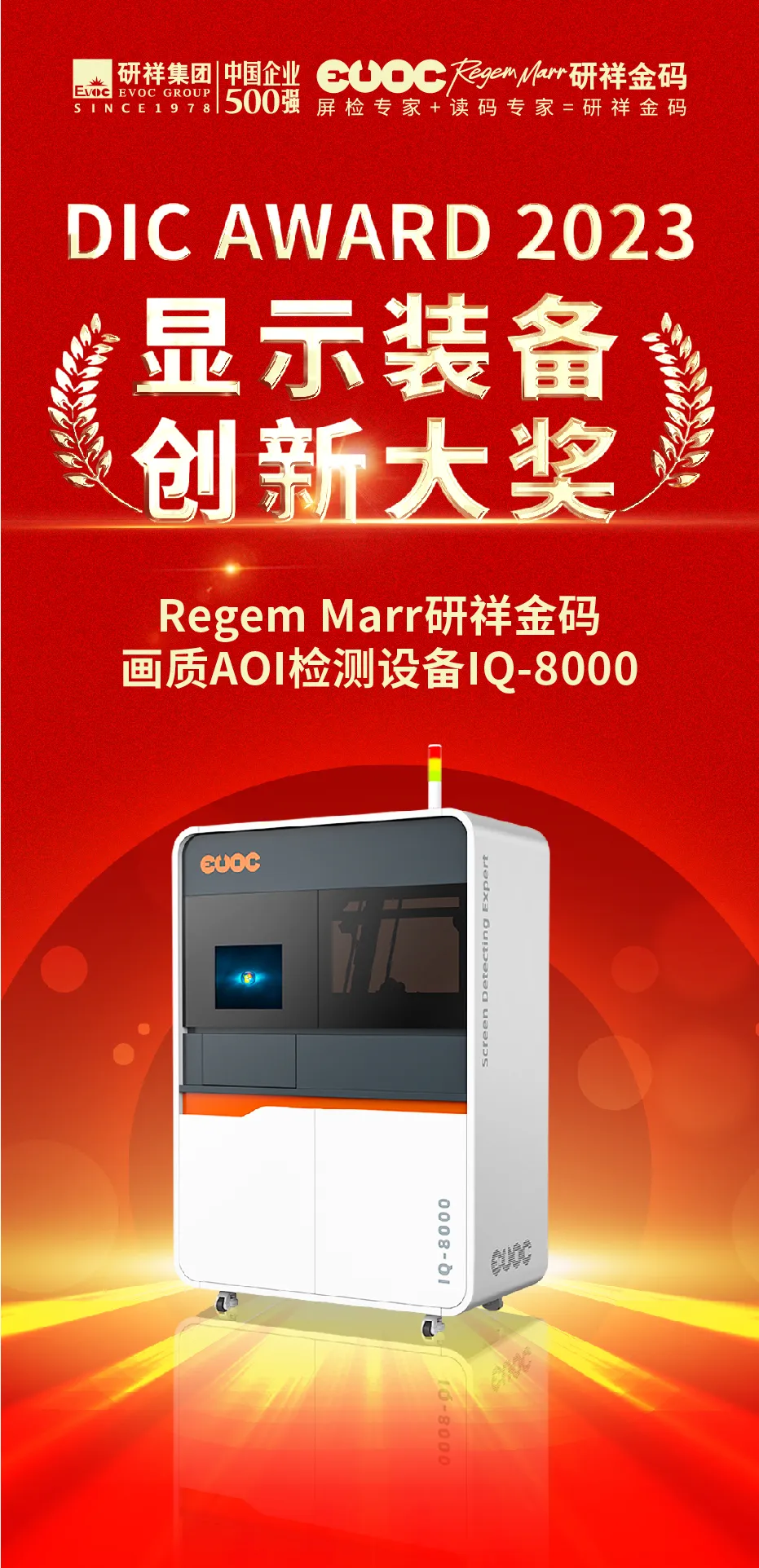 近日,DIC AWARD 2023国际显示技术创新大奖获奖名单公布,kaiyun开云电竞画质AOI检测设备IQ-8000凭借前沿AI技术、卓越的产品性能,荣获“显示设备创新大奖”